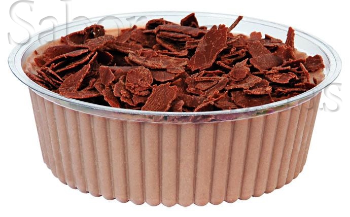 Pavê a base de creme de chocolate decorado com raspas de chocolate.