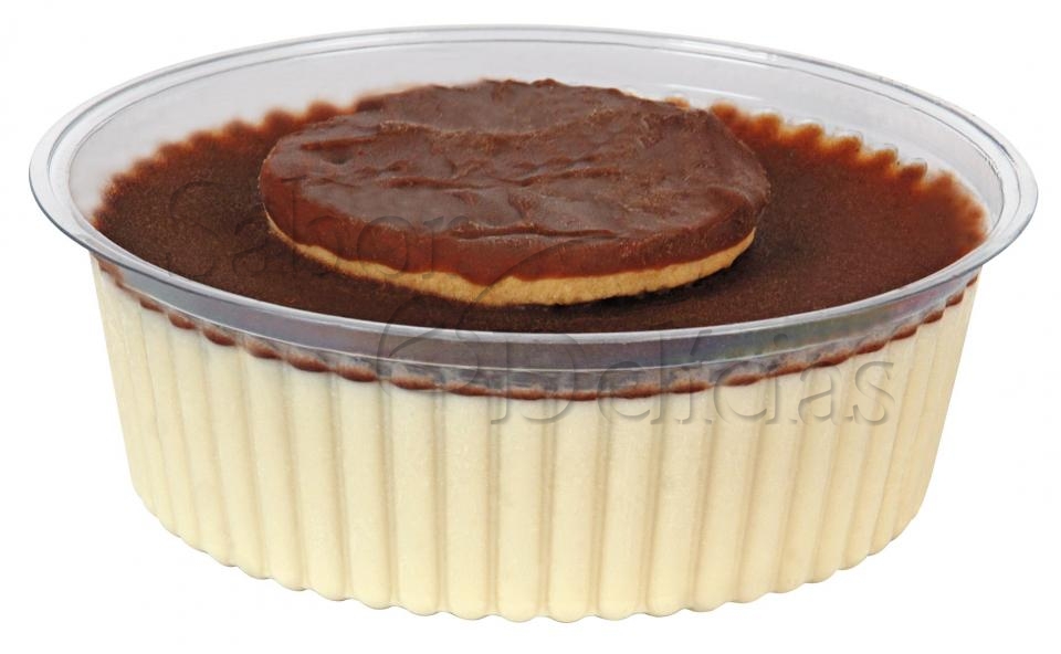 Torta a base de creme holandês decorado com calda de chocolate e biscoito tipo calypso.