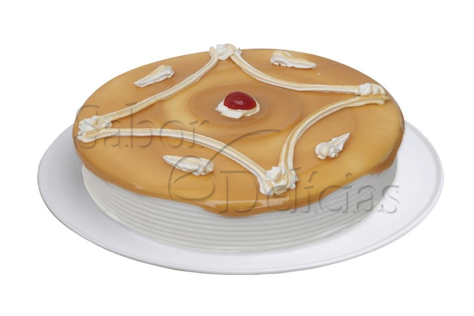 Pão de ló branco, recheado com doce de leite, coberto com chantilly e doce de leite.