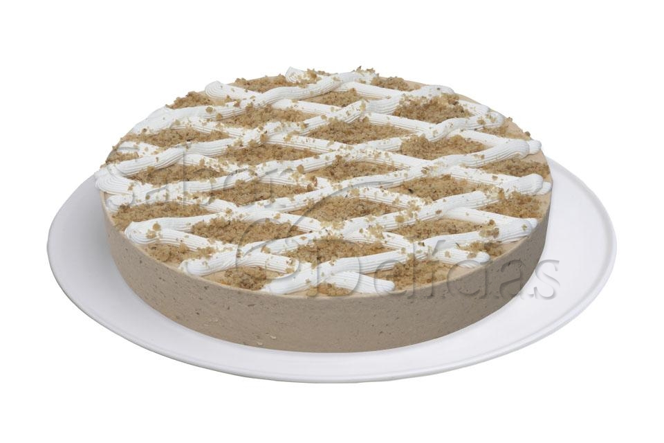 Creme de nozes, intercalado com biscoito tipo maria, enfeitado com chantilly e nozes moída.